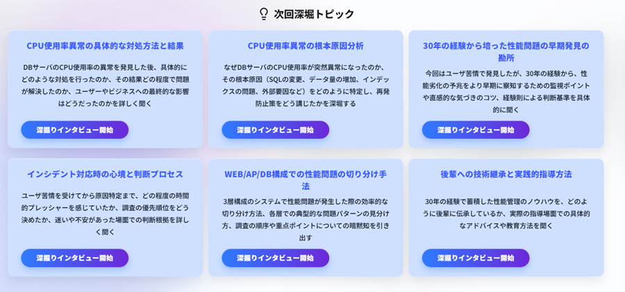トピックスを選んで深掘りする流れを繰り返して得た深い知見がAI人格の情報元になる