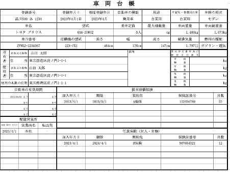 ここでは、車両管理台帳の記入サンプルを具体的にご紹介します。
