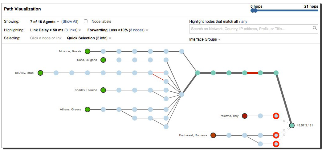 世界の至る所から、インターネット上にある任意のEnd-Pointに向けて、アプリケーションやトラフィック経路を監視することができます。