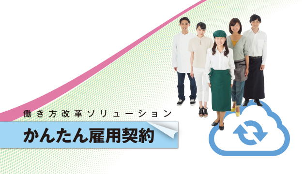 2019年4月に施行された「働き方改革関連法案」に対応する、外国人・パート・アルバイトなどの雇用契約業務や書類保存の電子化・ペーパレス化や、雇用契約管理のクラウドシステム化などにより、効率化、コストダウン、セキュリティ対策、コンプライアンス強化を実現いたします。